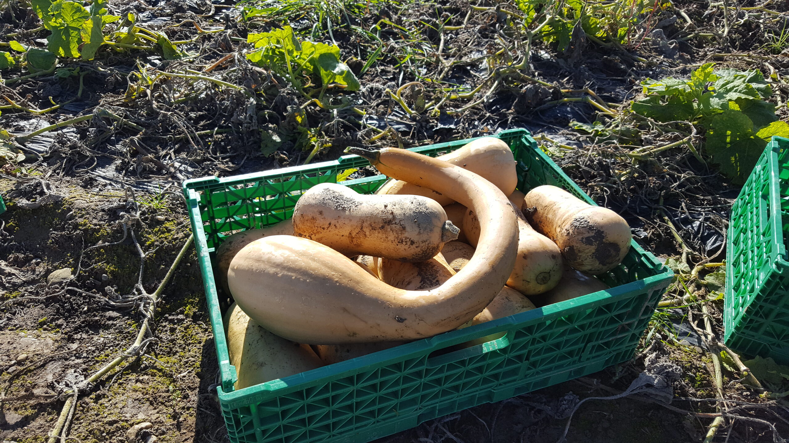 Die Kürbisse sind nach Bio Richtlinien produziert. Sorten sind Muscade, Butternuss und Hokkaido.